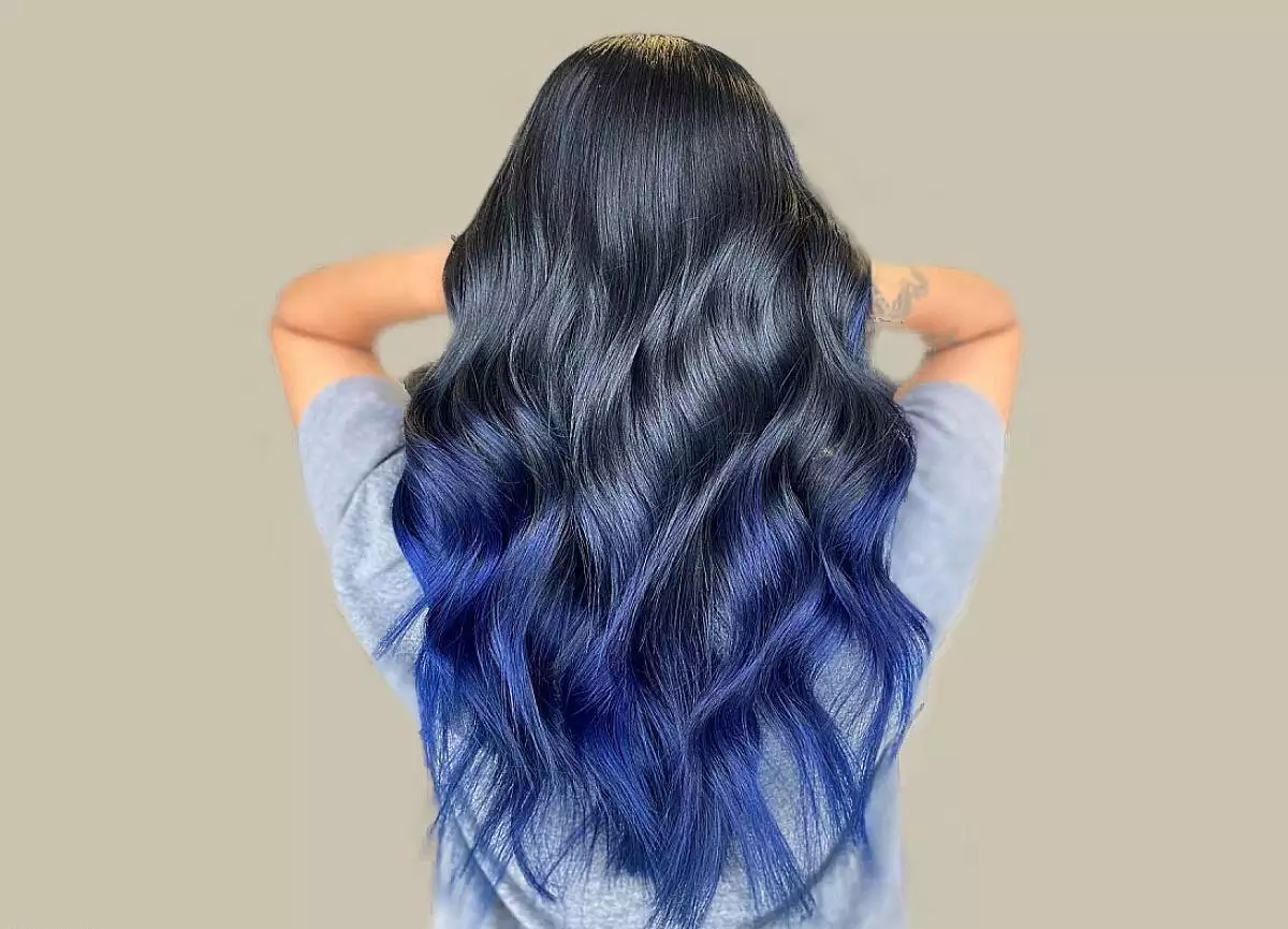 Warna hitam dengan highlight biru memberikan tampilan yang edgy dan mencolok. Highlight biru memberikan sentuhan warna yang menyenangkan dan kreatif pada rambut hitam.
