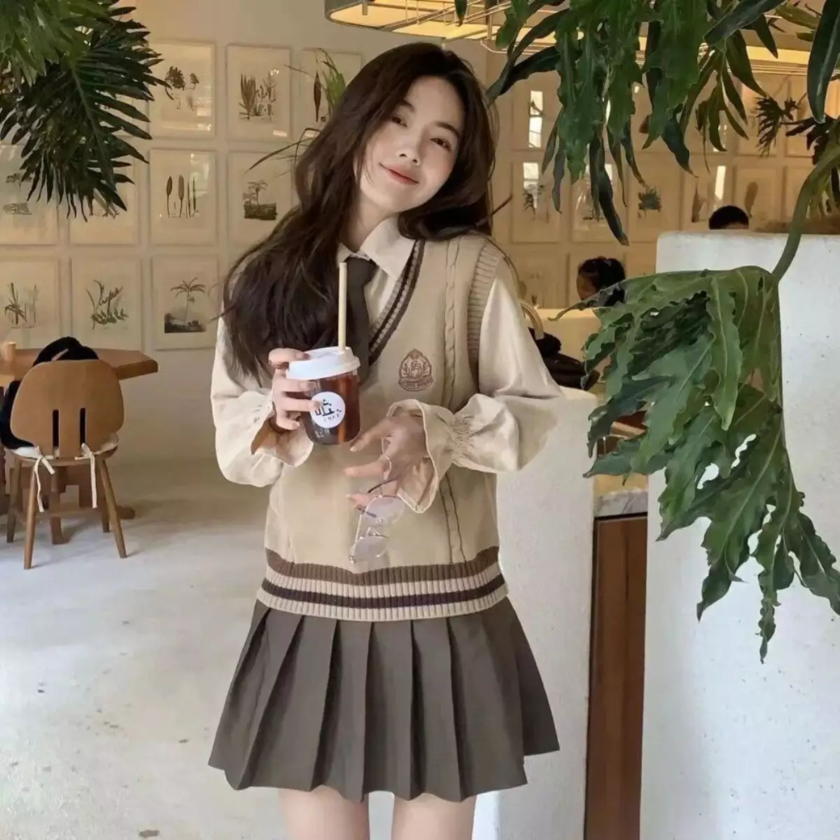 Gaya Preppy dengan Sweater V-neck dan Pleated Skirt