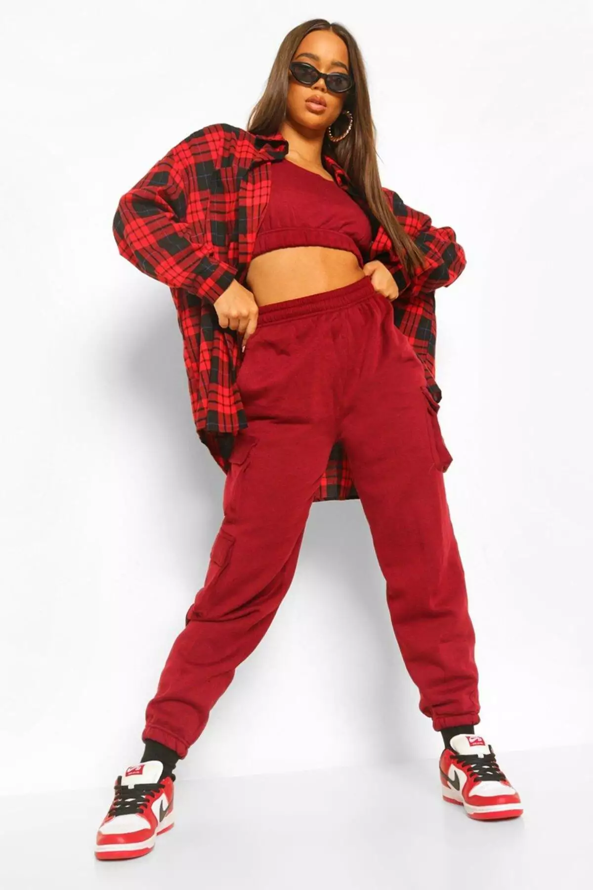 Lengkapi dengan sepatu sneakers dan aksesori sporty seperti topi baseball atau kacamata sporty.