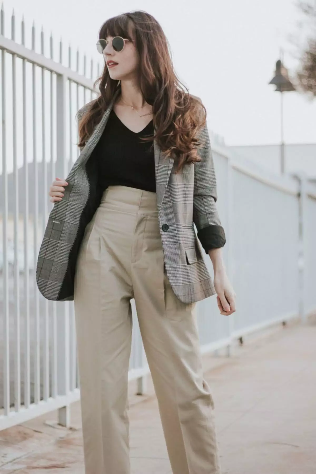 Tampilan Formal dengan Blazer dan High-Waisted Trousers