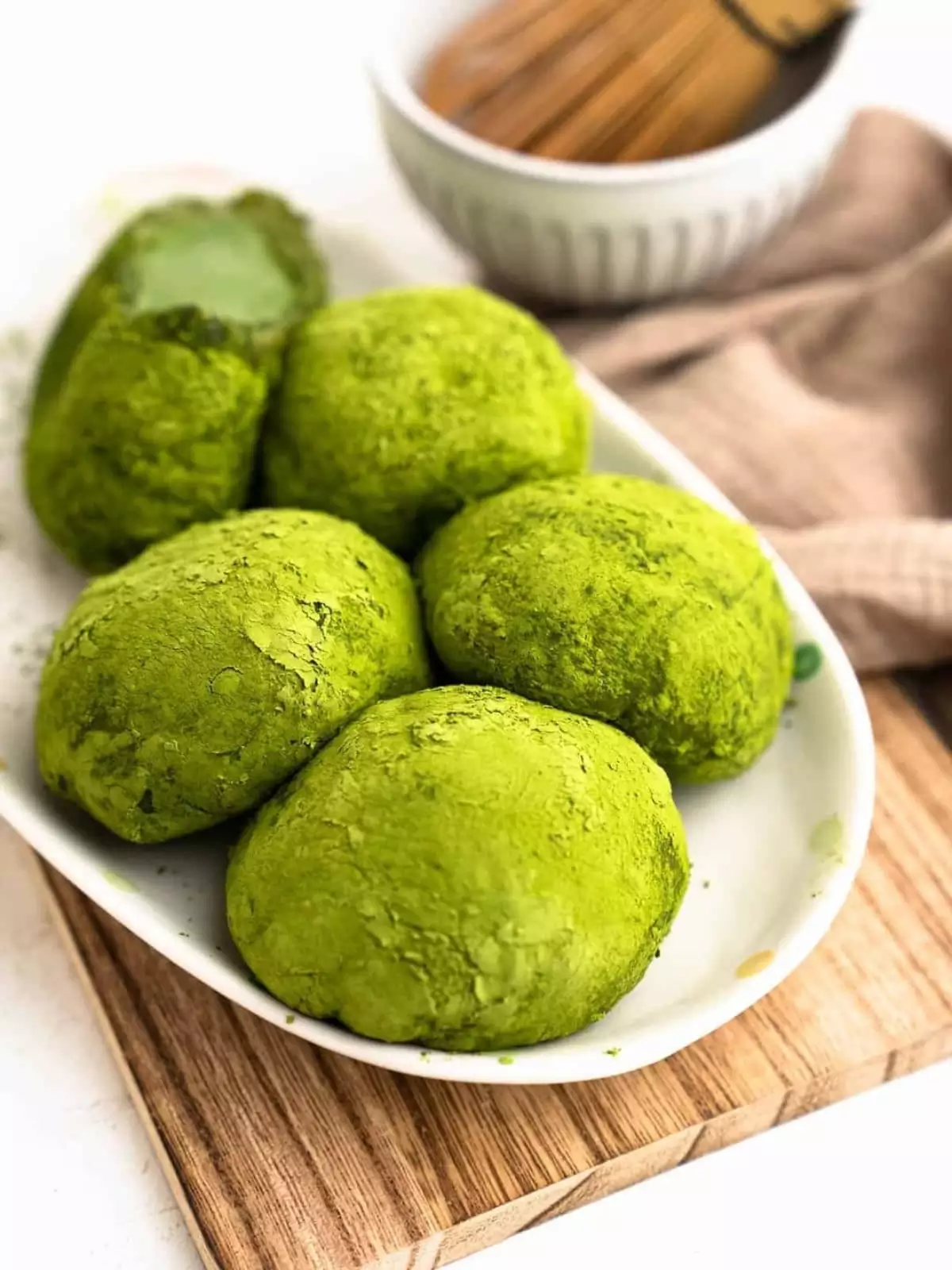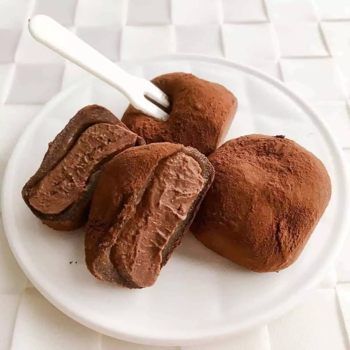 - Sajikan mochi bites matcha coklat dengan saus cokelat.