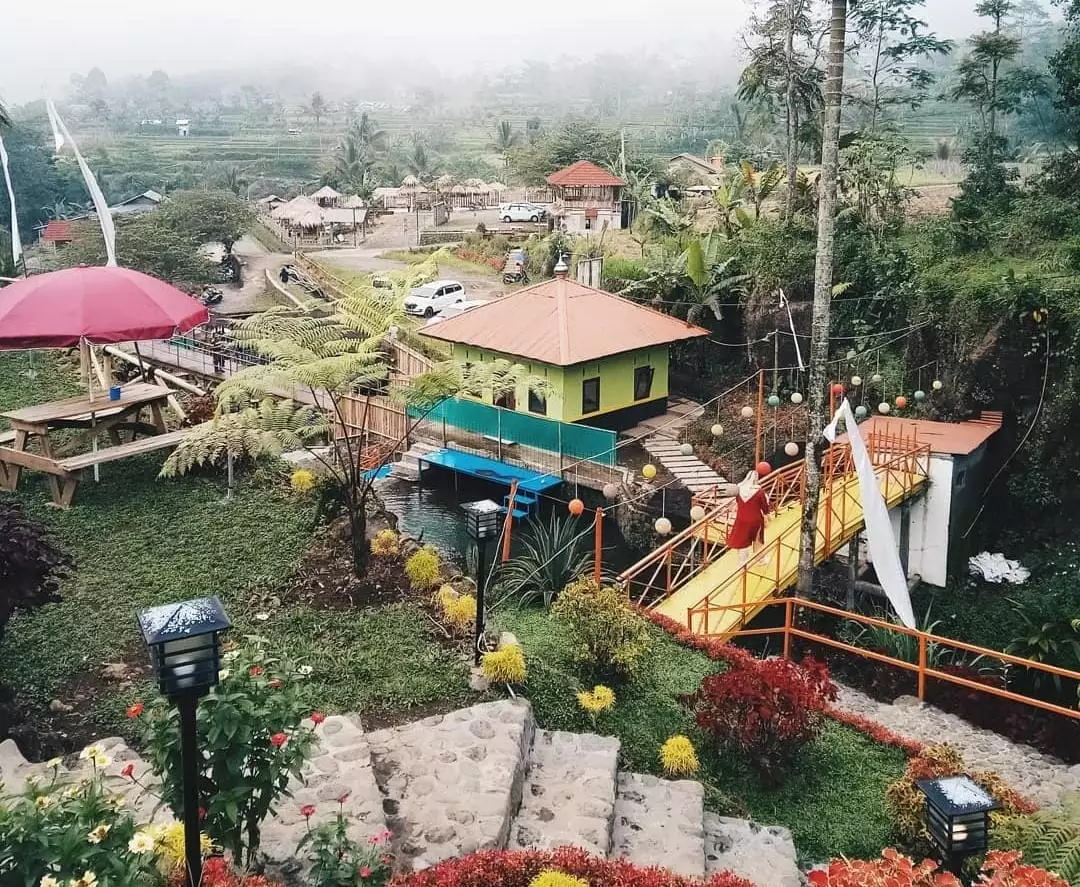 Tempat ini juga terdapat spot foto yang berbeda dari yang lain yaitu terdapat jembatan kaca dengan pagar berwarna putih yang membuat foto kamu terlihat menawan dengan pemandangan belakang gunung slamet.