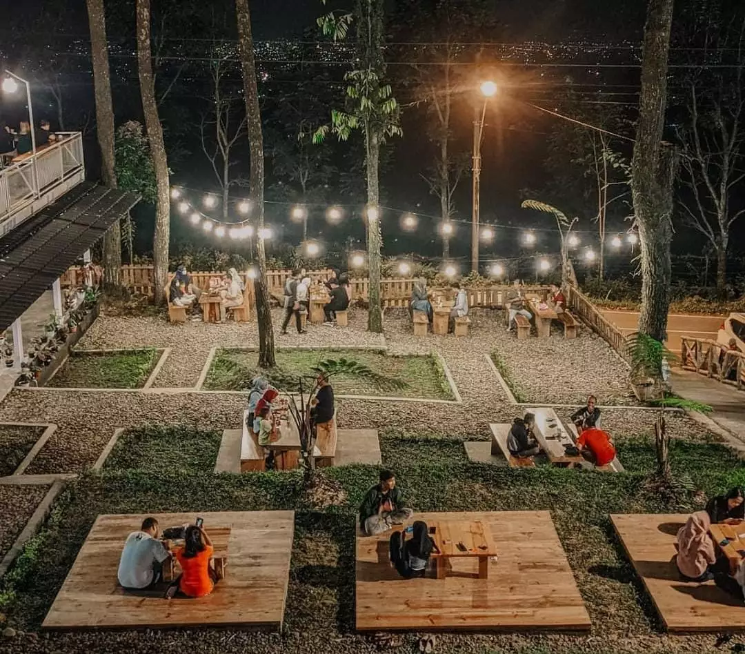 Pasalnya, tempat ini memiliki nuansa yang unik dengan meja dan kursi di alam terbuka tanpa atap hanya dengan pepohonan yang rindang di sekelilingnya. Namun, ada juga beberapa spot tempat yang memiliki atap dengan desain unik berbentuk segitiga seperti vila-vila kecil.