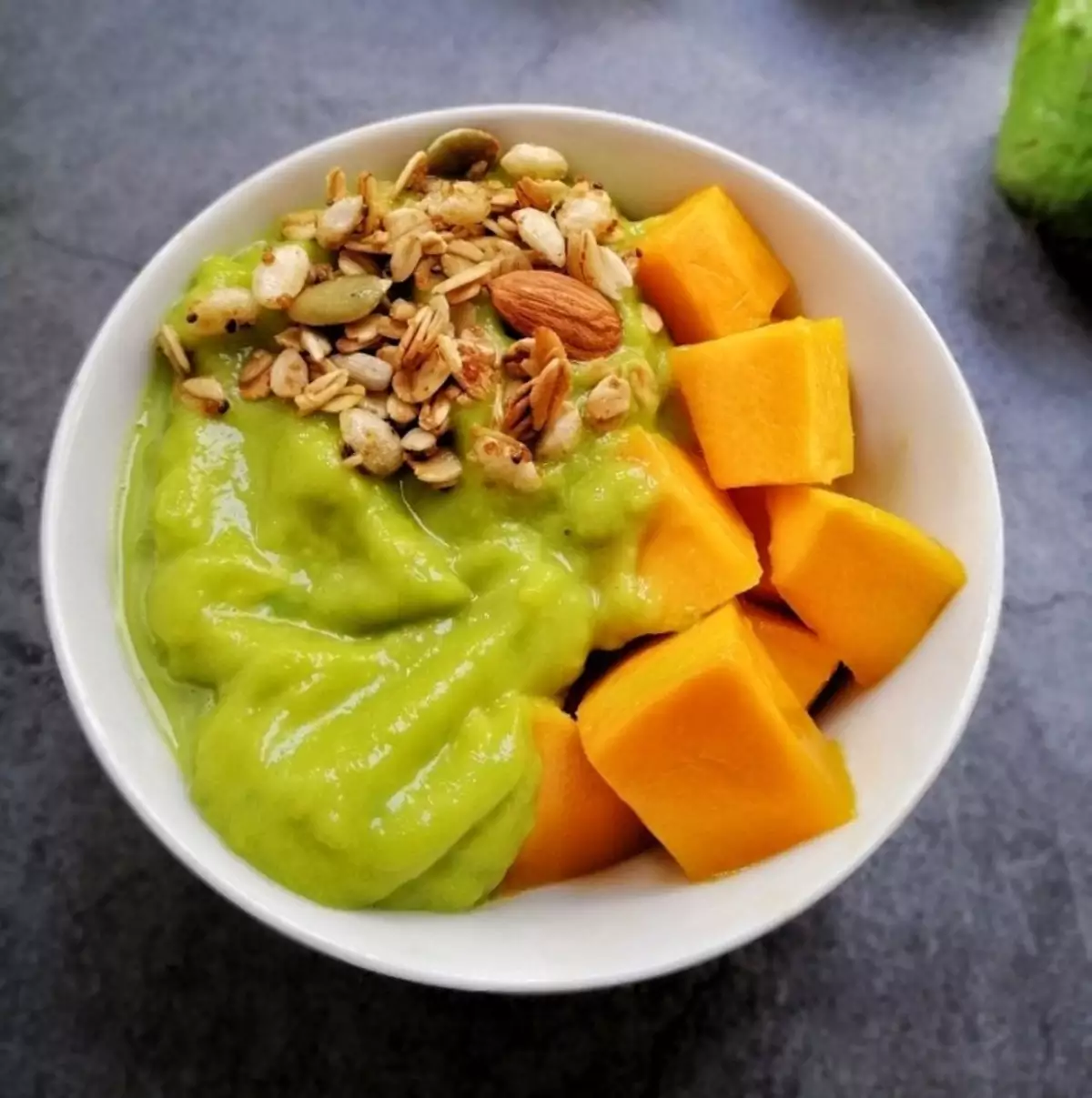 Smoothie pepaya dan alpukat ini kaya akan serat, vitamin C, dan lemak sehat yang baik untuk kesehatan kulit dan pencernaan Anda.