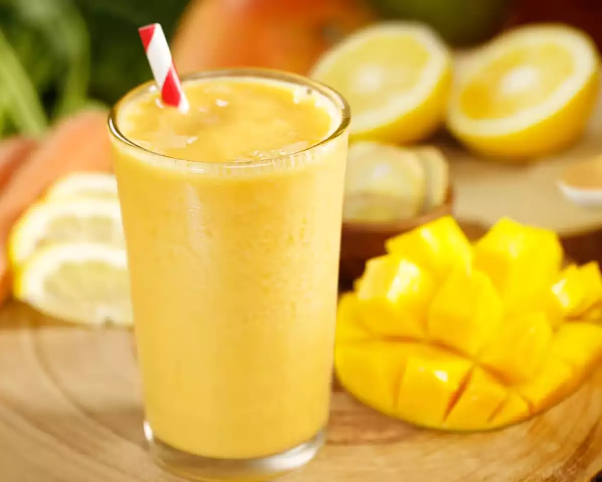 Tuang ke dalam gelas saji dan hidangkan dengan hiasan irisan mangga di atasnya. Smoothie mangga dan jeruk nipis ini memberikan rasa segar dan keasaman yang menyegarkan, serta kandungan vitamin C yang tinggi untuk meningkatkan daya tahan tubuh Anda.