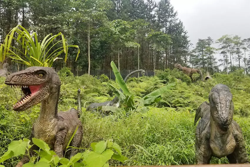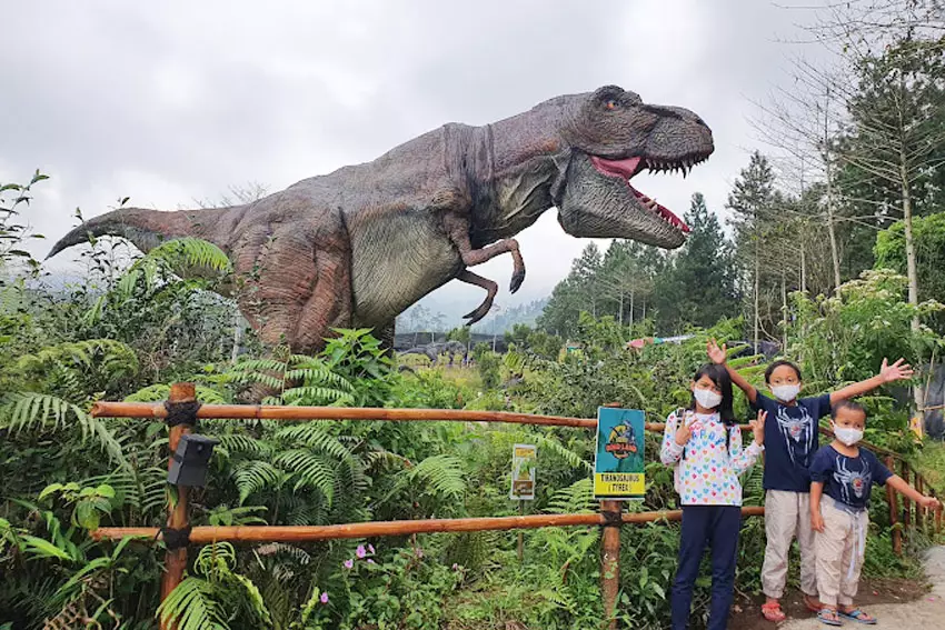 Wisata Taman Dinoland ini sangat cocok untuk edukasi anak-anak sekaligus tempat berswafoto dengan patung-patung dinosaurus.