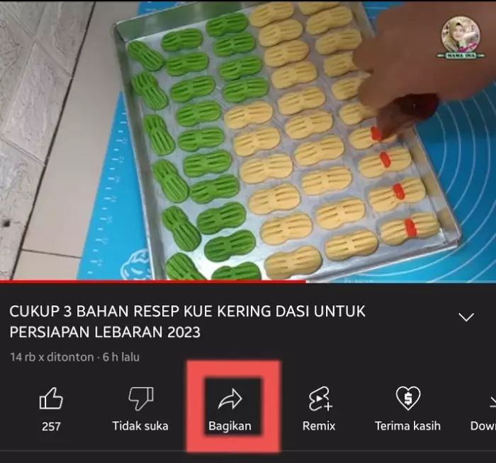 Setelah anda membuka video yang akan anda download, klik fitur bagikan yang biasanya muncul dibawah judul, disamping kanan fitur like dan dislike pada tampilan youtube di hp atau Anda dapat melihat foto berikut.