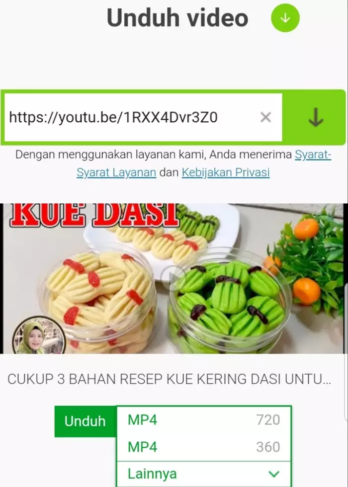 Jika telah muncul fitur unduh beserta kualitasnya seperti gambar diatas, Anda dapat memilih kualitas MP4 360 maupun 720 jika ada. Pastikan jangan kilik kualitas yang terdapat icon Mute🔇 karena hal itu akan membuat video Anda tanpa suara.