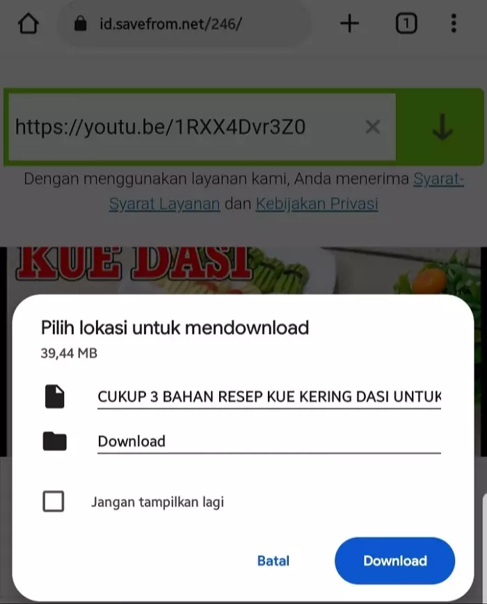 Catatan Penting ❗ Jika setelah mengeklik kualitas download kemudian anda diarahkan ke situs-situs lain maupun ke playstore, jangan panik, cukup tekan tombol kembali di ponsel Anda dan anda akan diarahkan kembali ke situs safefrom.net dan ada cukup klik unduh lagi kemudian jika sudah muncul tampilan seperti dibawah ini silakan klik download dan dipastikan video tersebut akan masuk ke galeri Anda.