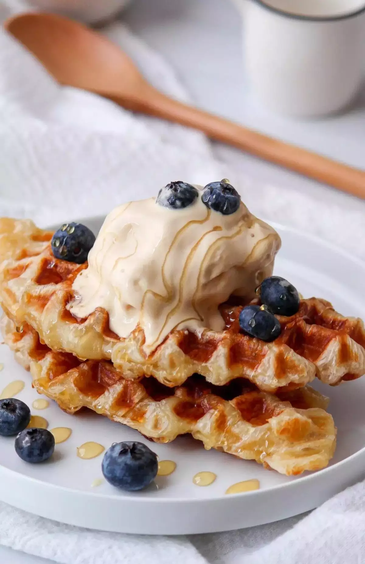 Dimana untuk bentuk dan bahan adonan yang digunakan adalah jenis kue croissant pastry kemudian dimasak pada cetakan waffle.