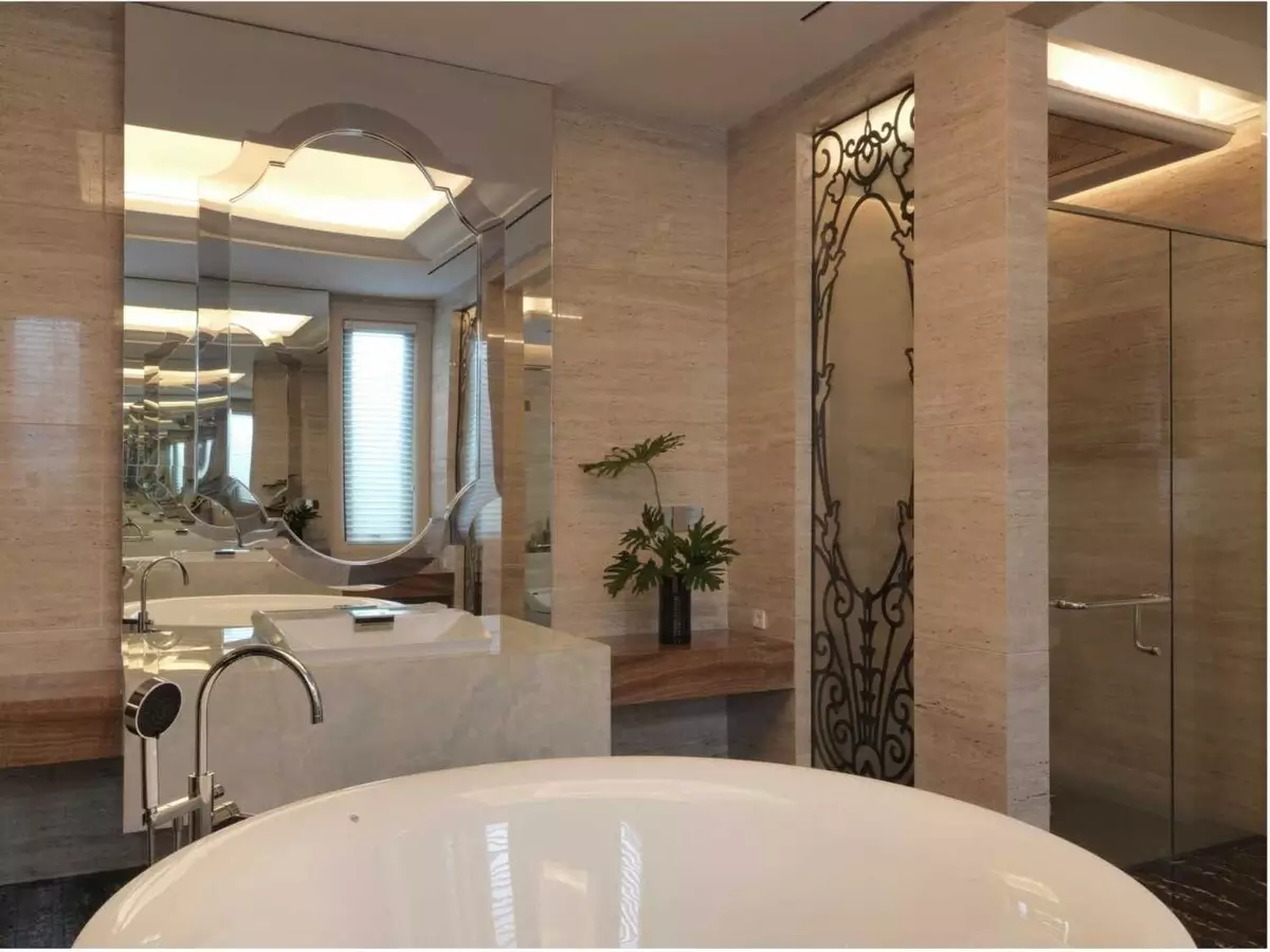 Menggunakan cermin dinding penuh atau full-length memberikan dimensi tambahan pada kamar mandi Anda. Selain itu, ini dapat menciptakan ilusi ruang yang lebih besar.