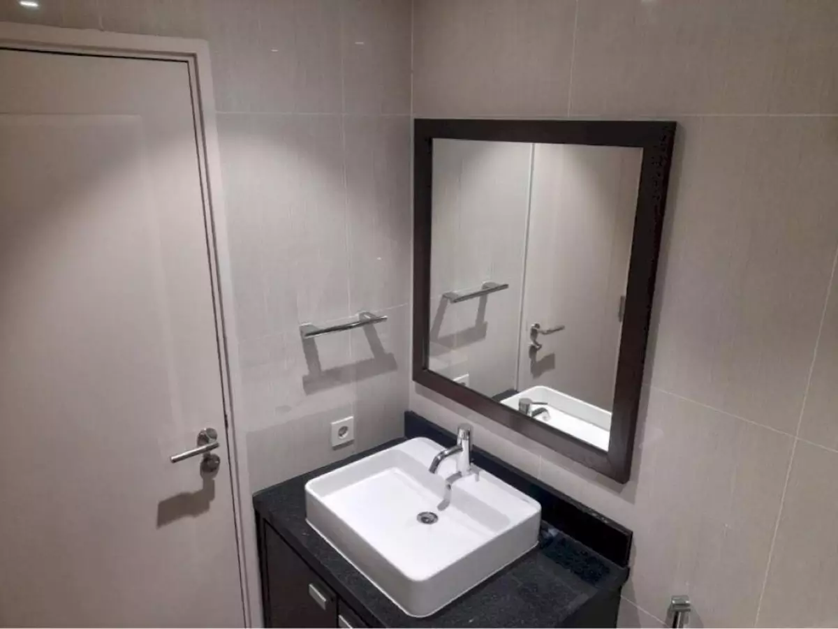 Pertimbangkan untuk memasang cermin besar di dinding untuk memantulkan cahaya dan membuat kamar mandi terlihat lebih luas.