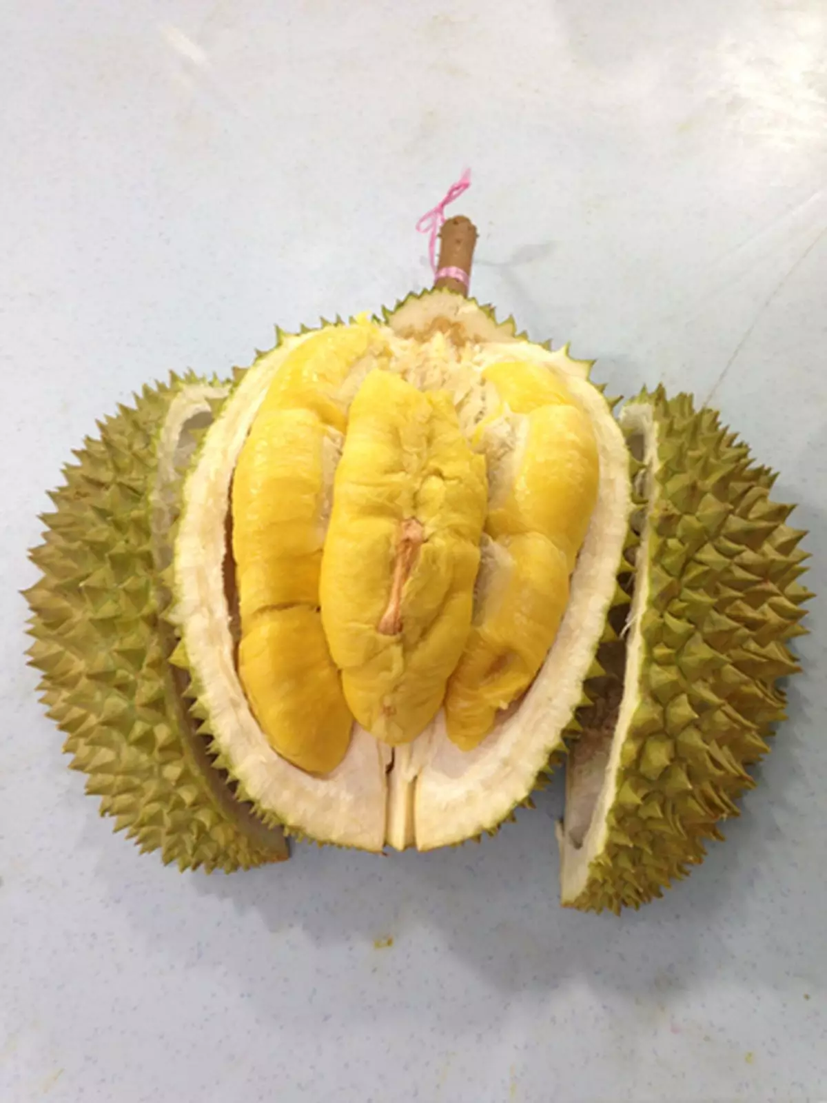 Saat dibelah, Anda akan menemukan daging durian yang padat dan tampak berisi. Secara tekstur, daging buahnya lembut di mulut dan memiliki serat yang sangat sedikit.