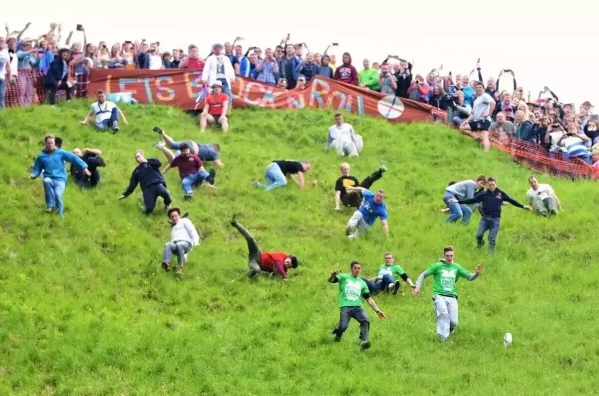 Di puncak bukit di dekat kota Gloucester, Inggris, ribuan orang berkumpul setiap tahun pada hari Senin Paskah untuk mengikuti Cooper's Hill Cheese Rolling.