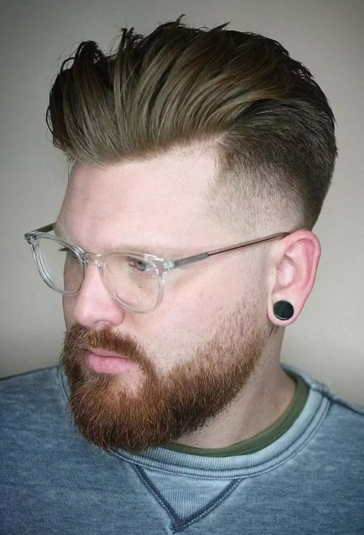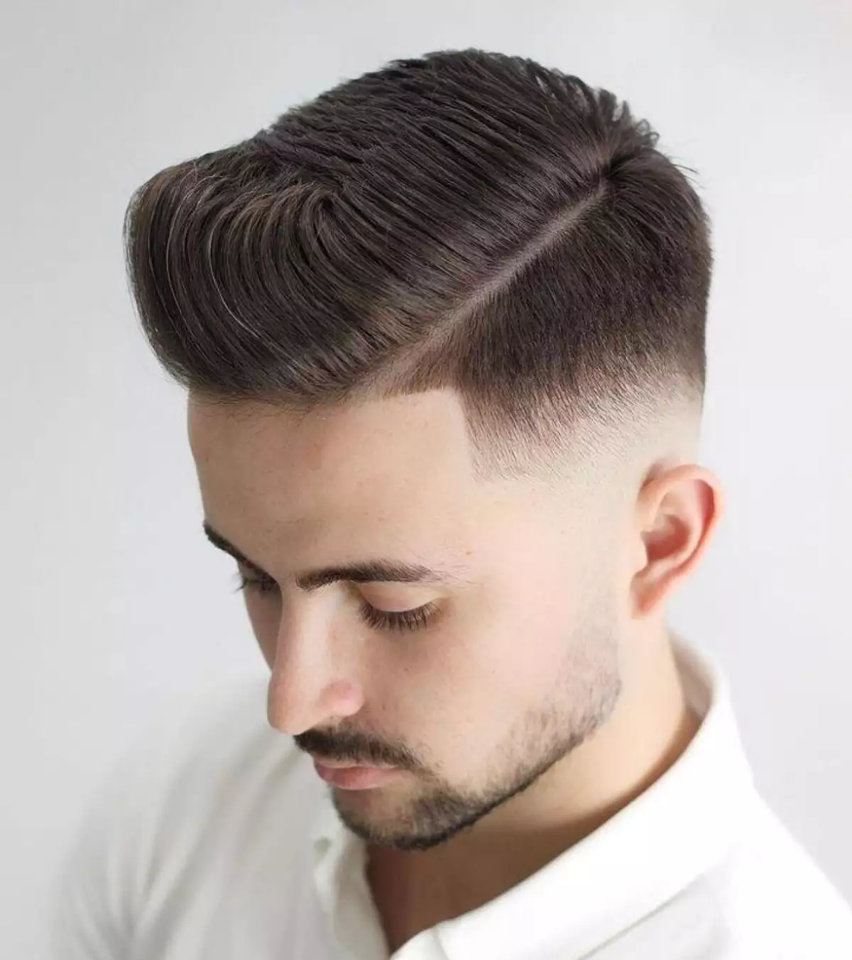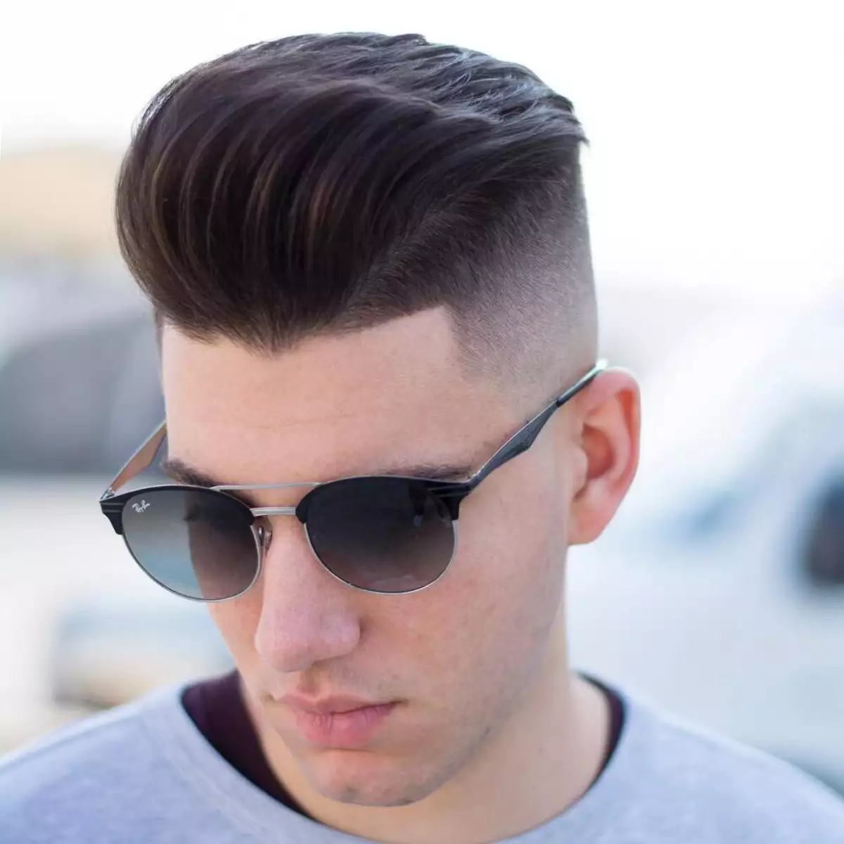 Dalam variasi ini, pompadour yang tinggi dipadukan dengan high fade pada sisi dan belakang kepala.