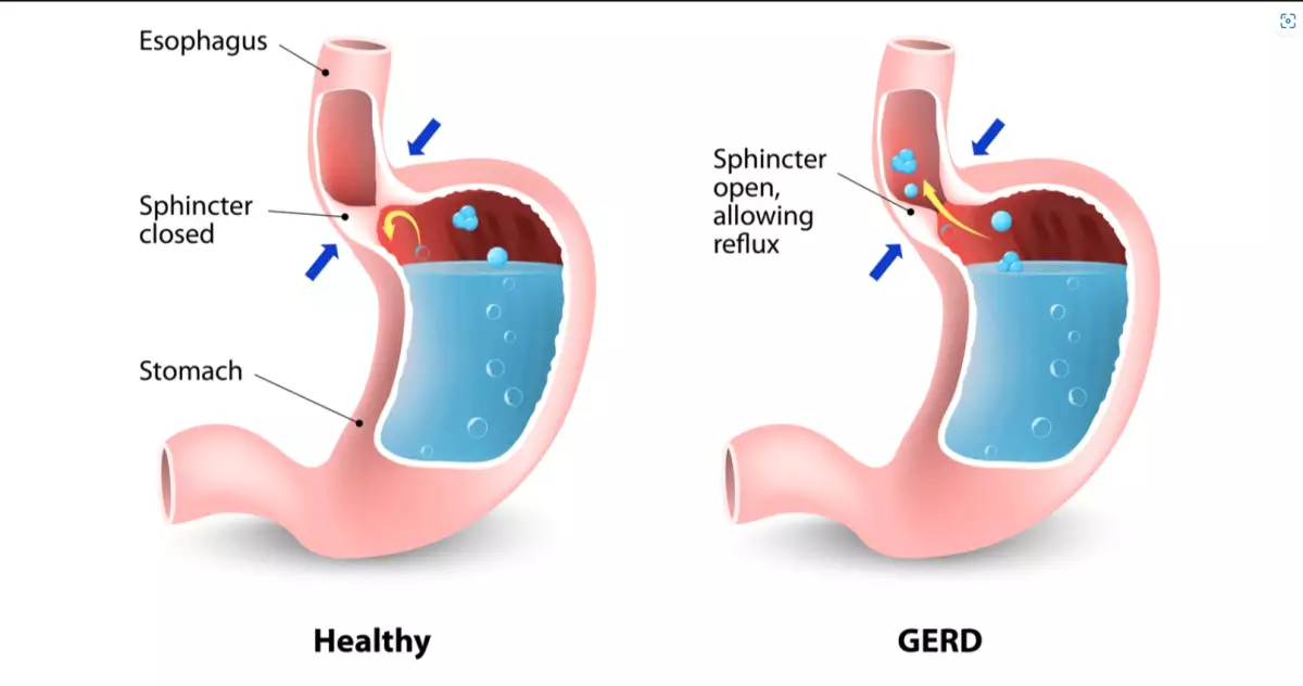 GERD (Gastroesophageal Reflux Disease) adalah sebuah kondisi di mana asam lambung dan makanan yang tidak tercerna naik ke kerongkongan, sehingga menyebabkan sensasi terbakar atau nyeri pada dada (heartburn).