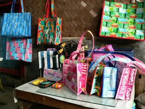 Seperti halnya bungkus kopi, kita harus mengumpulkan bungkus kopi dengan merk dan warna yang sama untuk nantinya bisa dibuat menjadi tas. Memilah sampah bahan organik dan anorganik kita bisa menjadi lebih tertib untuk membuang sampah.