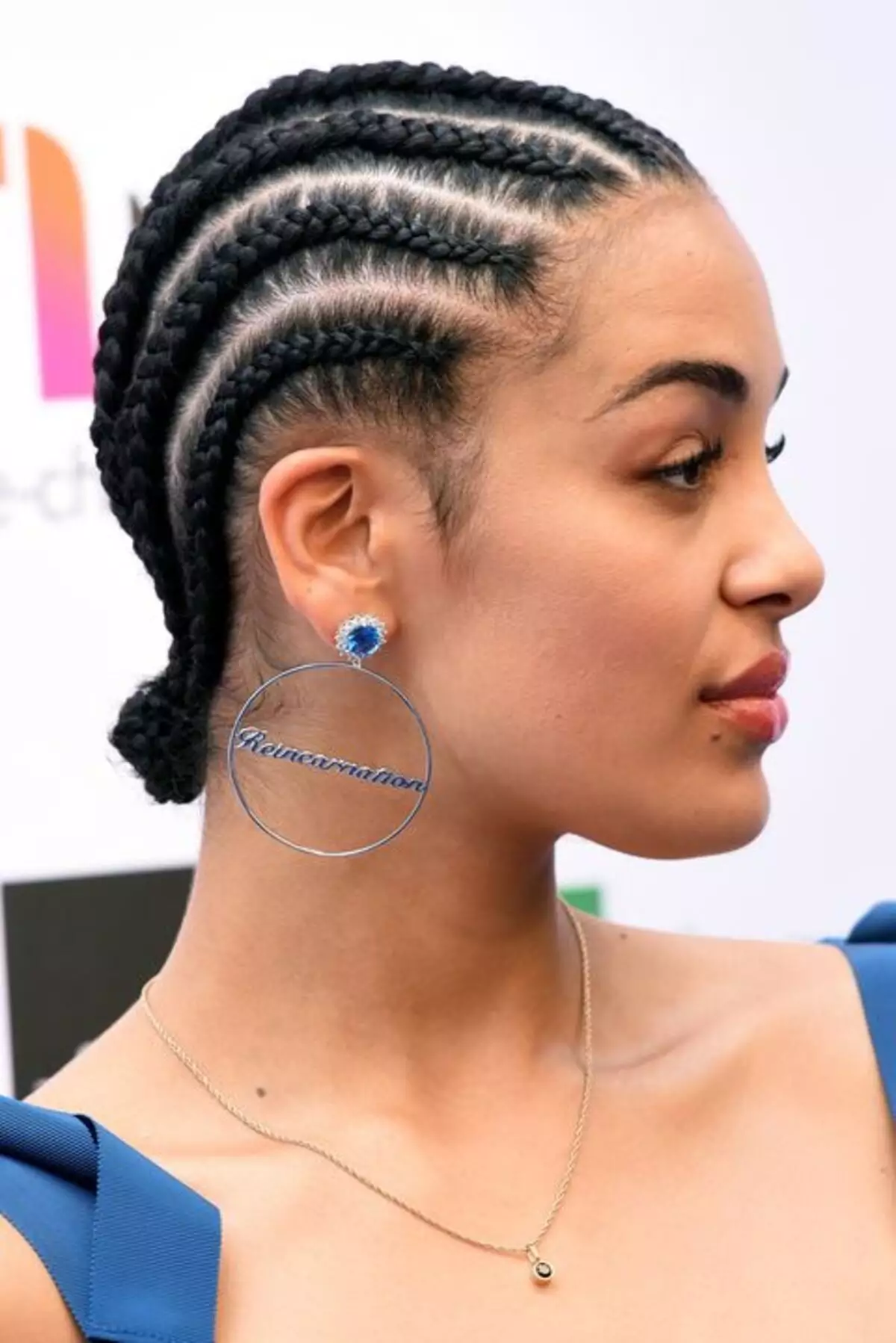 Mengkepang rambut ke samping dalam pola cornrows dapat menciptakan tampilan yang elegan dan unik.