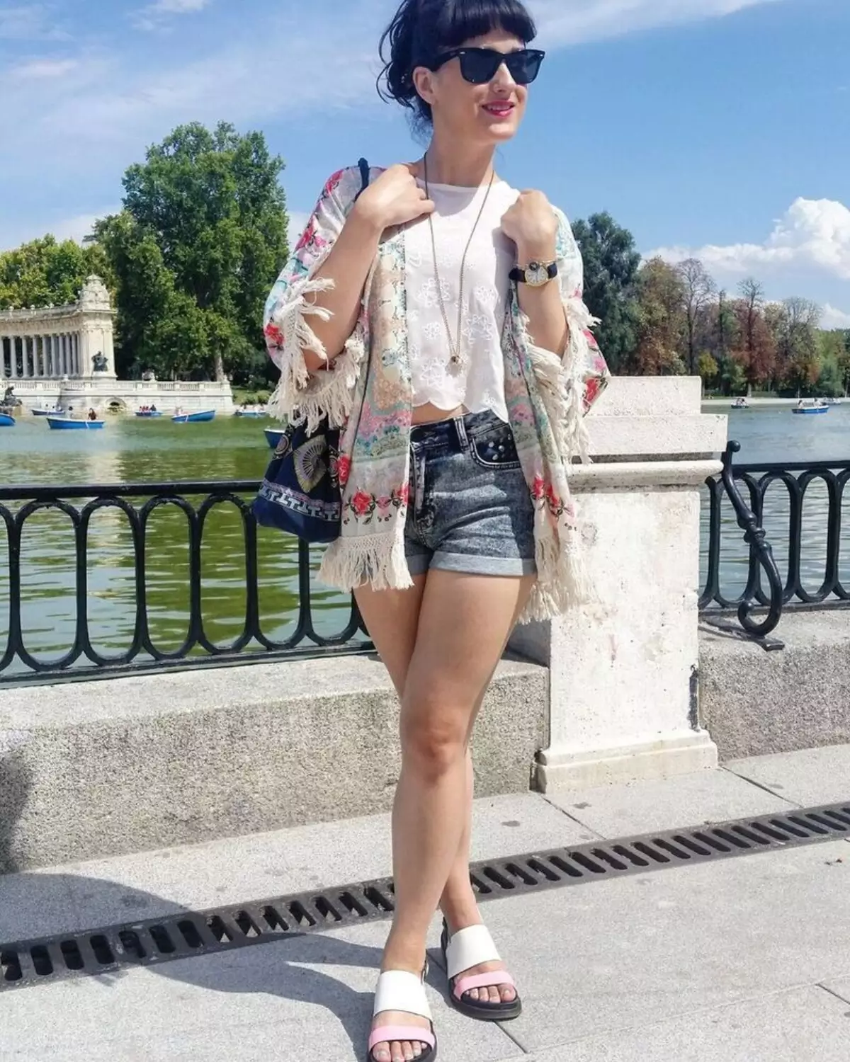Kenakan tank top atau camisole di bawah kimono untuk menyeimbangkan tampilan. Tambahkan sepatu sneakers atau sandal untuk menyelesaikan penampilan yang chic dan fashion-forward.