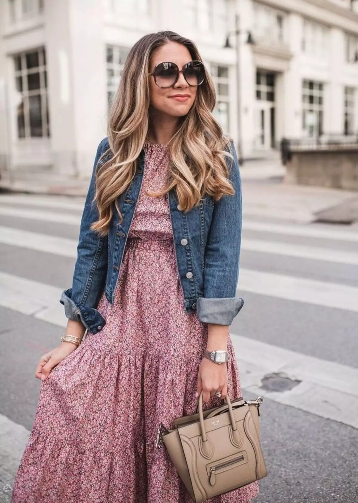 Kombinasi denim jacket dengan dress adalah pilihan yang trendi untuk tampilan street style yang feminin namun tetap santai.