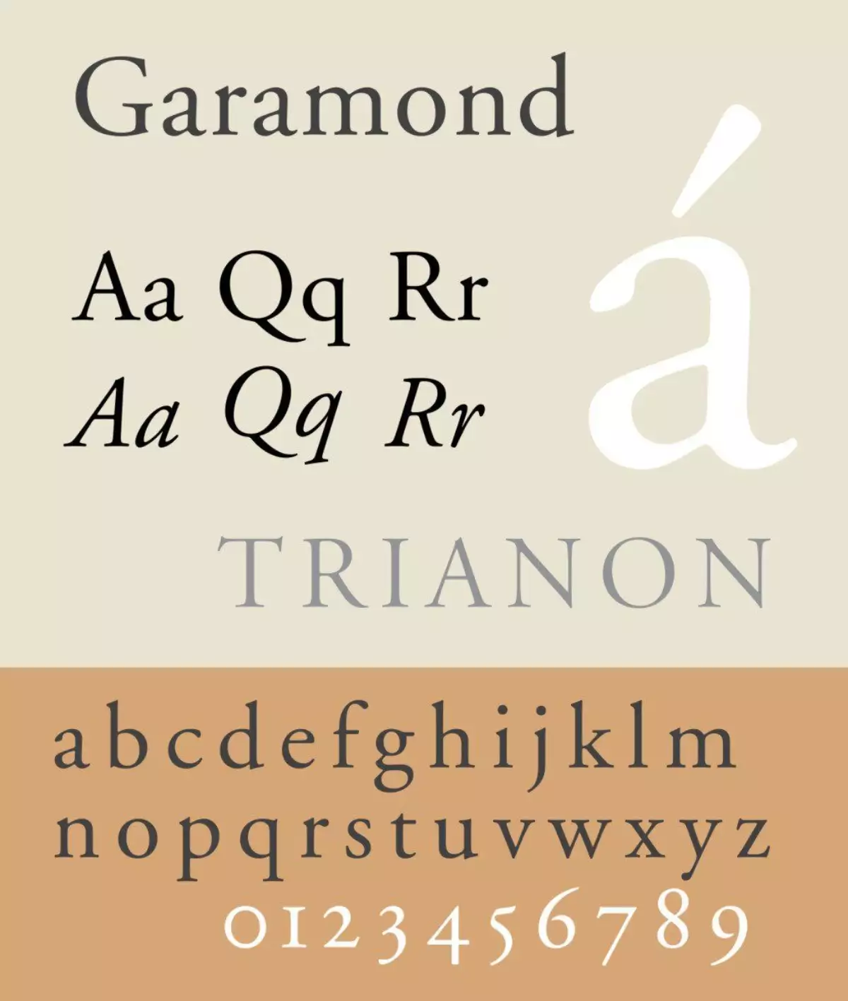 Garamond adalah font serif yang memiliki gaya klasik dan elegan. Font ini terinspirasi dari tulisan tangan abad ke-16 yang dibuat oleh seorang pencetak Prancis bernama Claude Garamond. Font ini memiliki ujung huruf yang bercabang dan lekukan huruf yang halus.