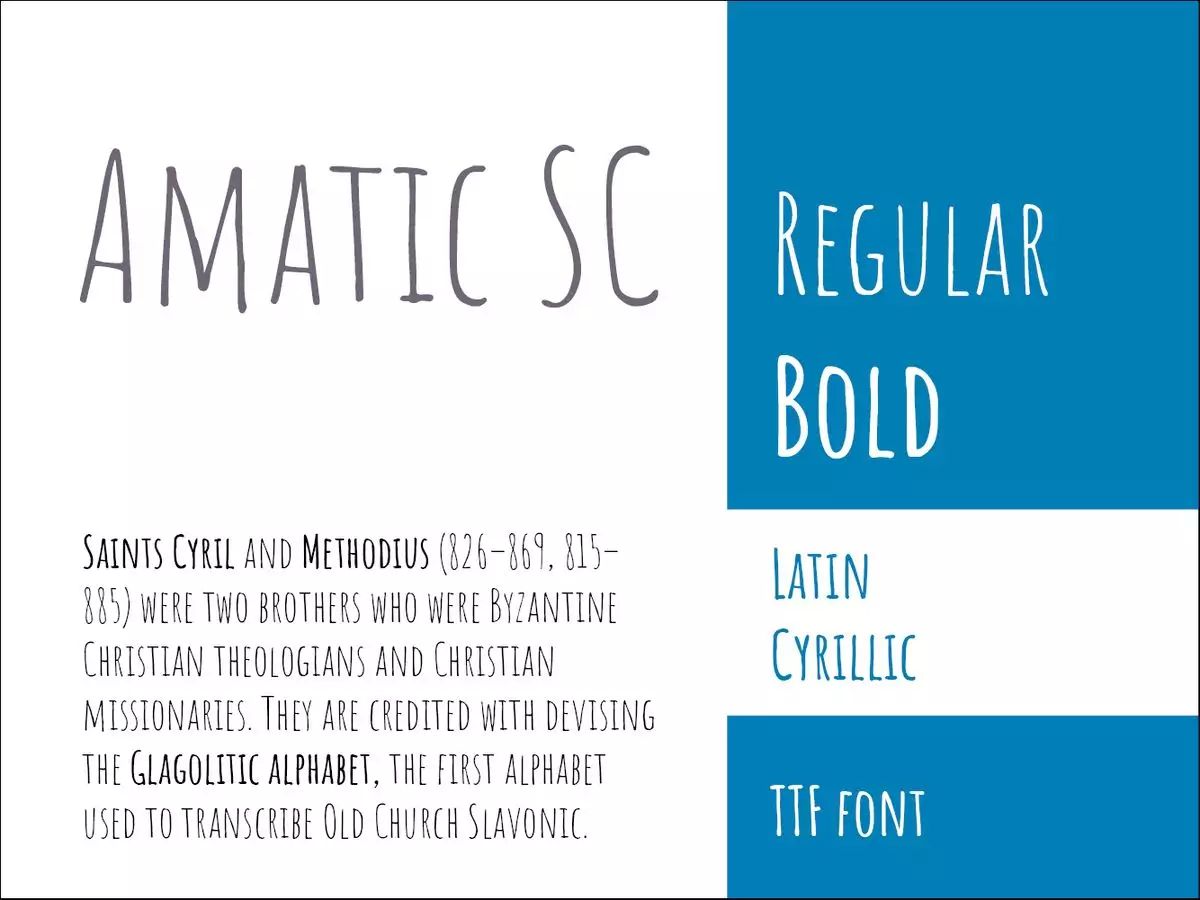 Amatic SC adalah font script lain yang menyerupai tulisan tangan dengan pena. Font ini memiliki bentuk huruf yang unik dan ramah, dengan garis huruf yang tidak rata .