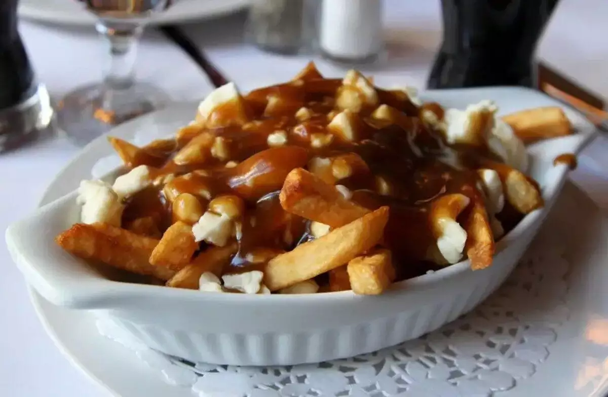 Kanada terkenal dengan hidangan ikoniknya, yaitu poutine. Poutine adalah hidangan yang terdiri dari kentang goreng yang ditaburi dengan keju curds dan disiram dengan saus kental.
