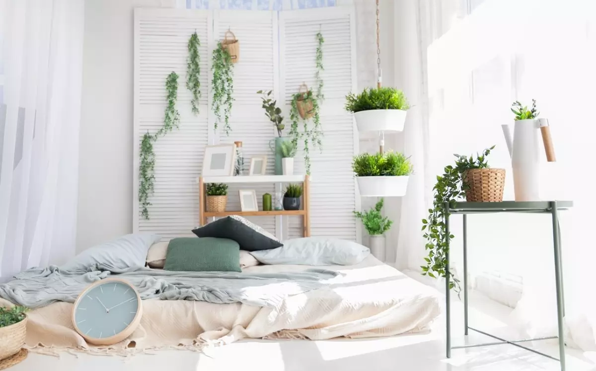 Tambahkan tanaman indoor dan elemen alam lainnya untuk menyatu dengan konsep Jepang. Tanaman seperti bonsai atau tanaman yang mudah dirawat, dapat memberikan kesan alami dan menyegarkan udara di dalam kamar tidur.