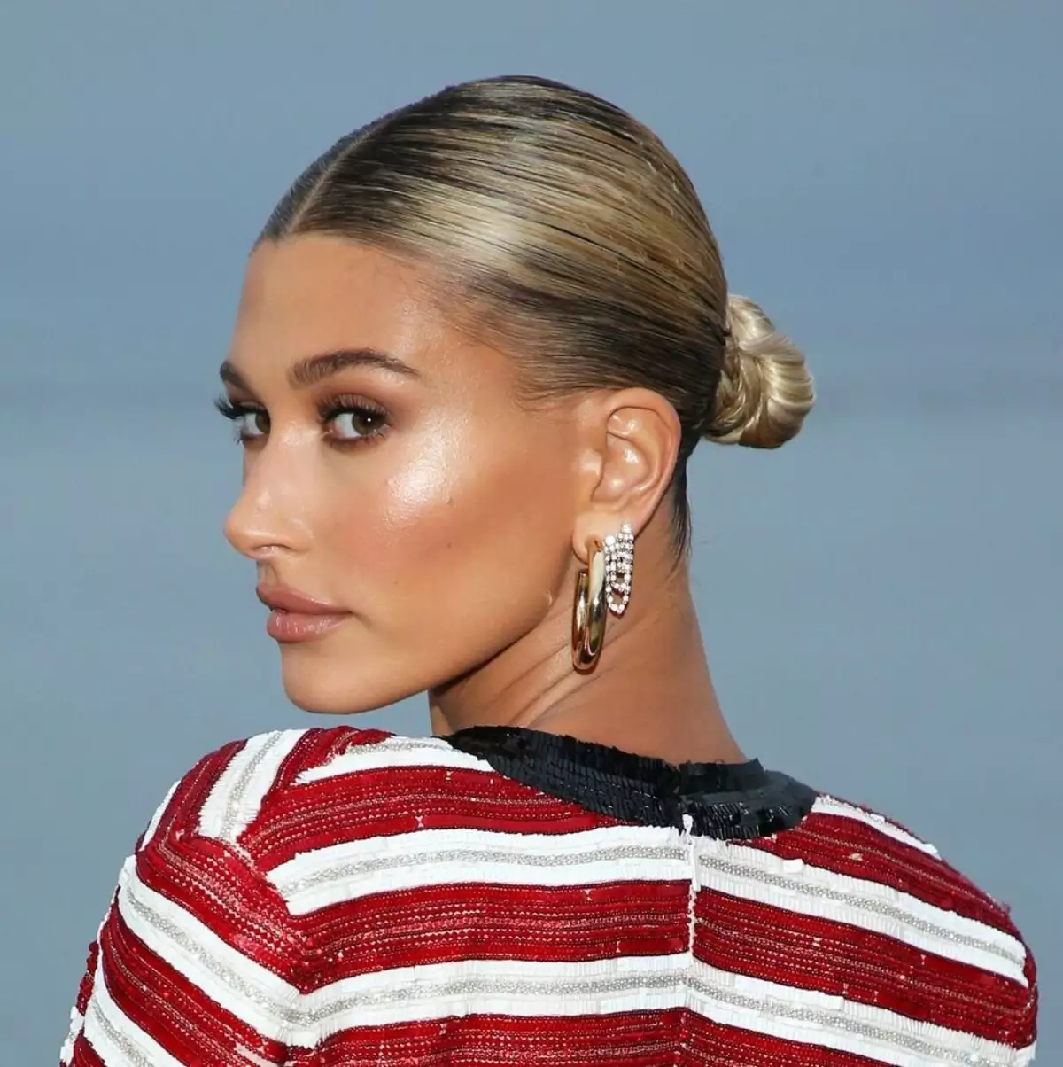 Untuk tampilan yang lebih kontemporer dan modern, rambut dapat diatur rapi ke belakang kepala dengan permukaan yang halus dan mengkilap.