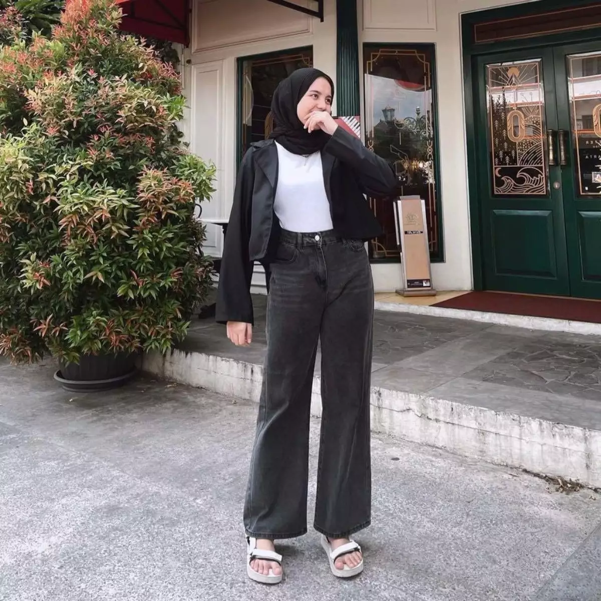 Kamu bisa memilih kaos dengan warna yang senada dengan hijab kamu, dan memakai celana jeans sebagai bawahan. Untuk sepatu, kamu bisa memilih sneakers atau flat shoes yang sesuai dengan warna kulit kamu.