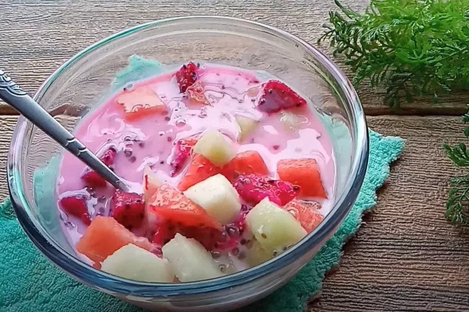 Membuat sop buah bisa kita praktekan sendiri dirumah dengan menyiapkan bahan seperti melon, apel, nanas, alpukat, dan biji chia seed. Selanjutnya semua bahan dicampurkan dengan air es dan sirup serta susu kental manis untuk menambah cita rasa kelezatan sop buah.