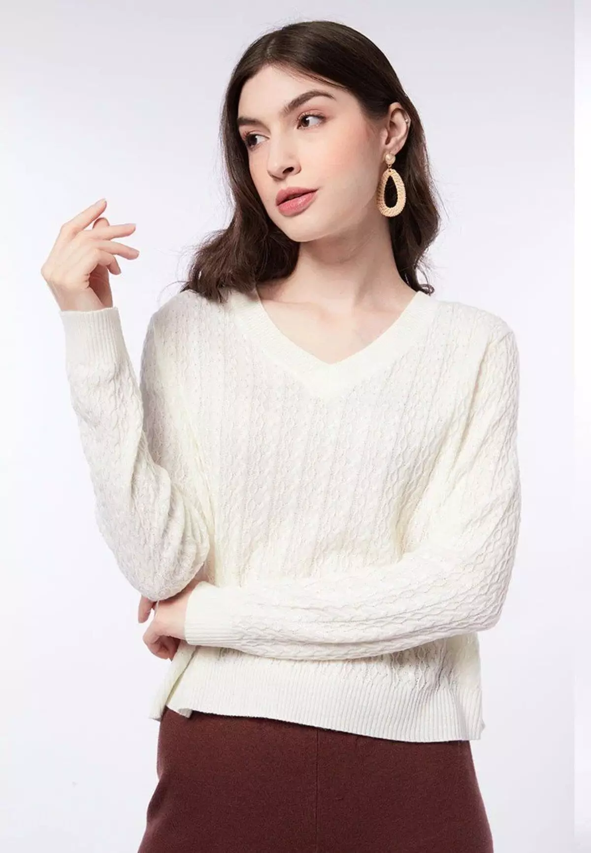 Sweater V-Neck adalah pilihan yang cerdas dalam menciptakan tampilan preppy. Leher V memberikan kesan yang lebih terbuka dan menampilkan sedikit leher, memberikan nuansa feminin.