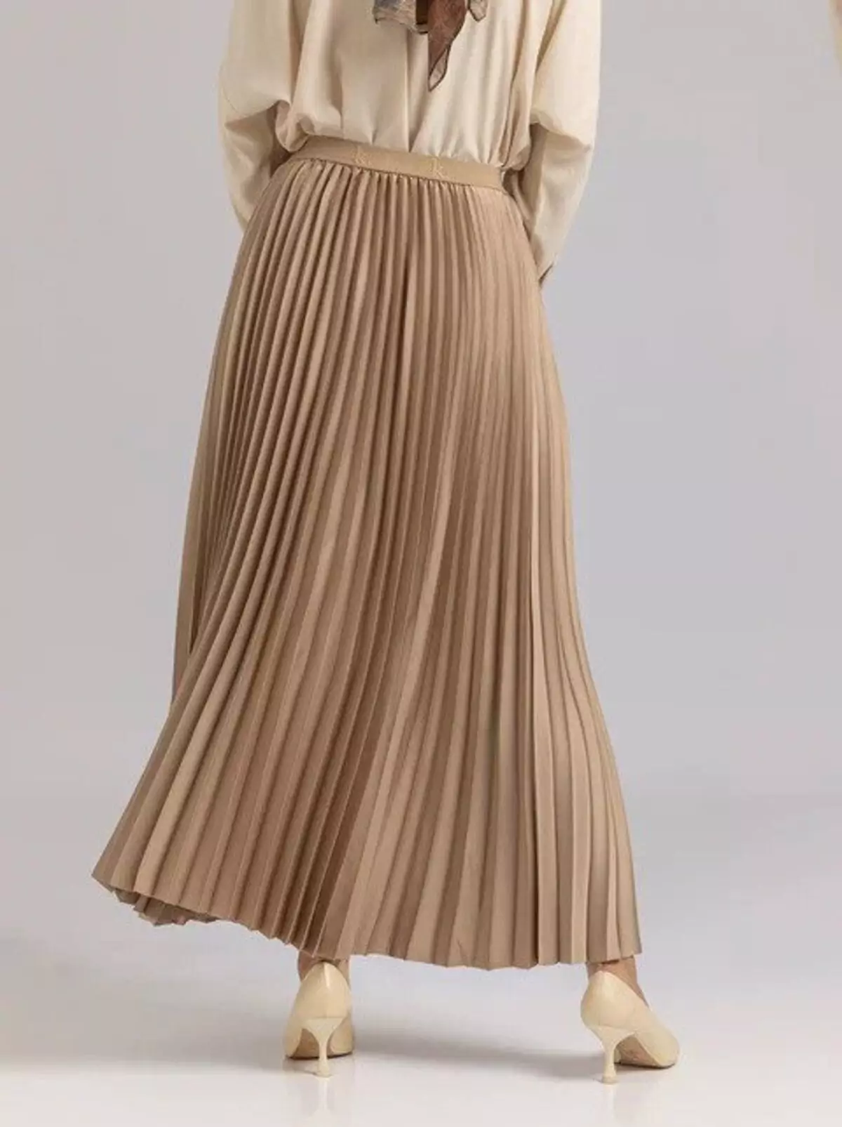 Rok pleated yang rapi dan sweater yang tersusun dengan baik akan memberikan kesan yang lebih profesional.