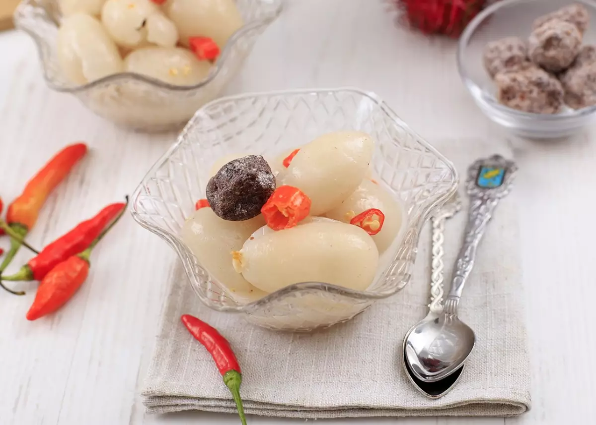 Untuk memperoleh rasa enak kalian menikmatinya saat asinan menghasilkan air berwarna putih. Air tersebut berasal dari campuran buah dan kiamboy yang didiamkan dalam kulkas.
