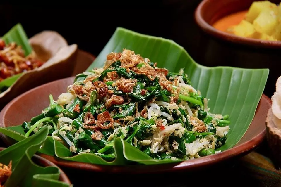 Makanan ini hampir sama seperti urap namun perbedaanya pada pengolahan sayur yang dimana urap dikukus/rebus terlebih dahulu sebelum dicampurkan dengan bumbu.