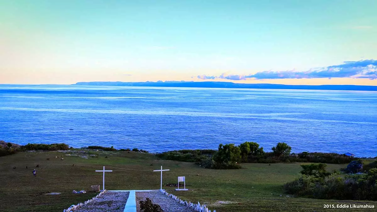 Lebih jauh mata memandang tampak lautan biru yang bergelombang serta tampak samar-samar pulau Timor di sebrang.